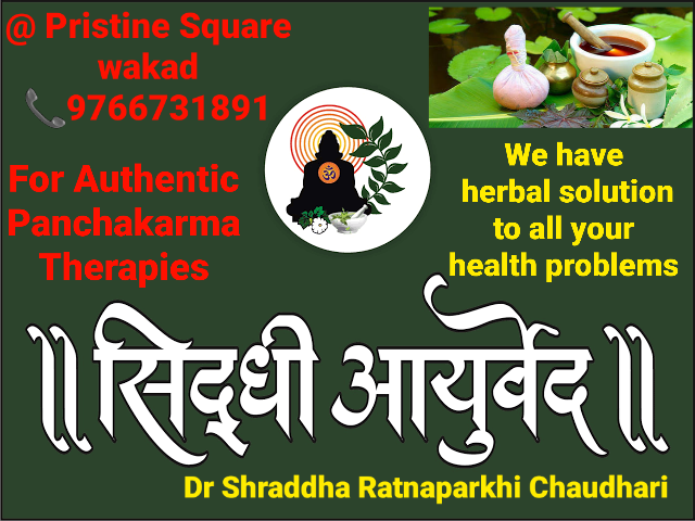 In our day to day life, sometimes maintaining Healthy life-style becomes challenging. Increasing stress, workload, wrong eating habits, less s or Destrurbed sleep can lead to many Health Issues Specially Digestive Problems. The Panchakarma Detoxification Process helps not only to rejuvenate the body also helps in Cleaning of Gut. Boosts Immunity and Promotes Good Health We Do authentic Panchakarma Therapies in our Well Equipped Clinic. Contact us on 9766731891 or 9022039939, meet us, know Your Body type by our Special Prakruti- Parikshanam. and get information of the exact Panchakarma which is beneficial to your body type. - Dr Shraddha Ratnaparkhi Chaudhari Siddhi Ayurved and Panchakarma Multispeciality Clinic , Pristine Square, Wakad.